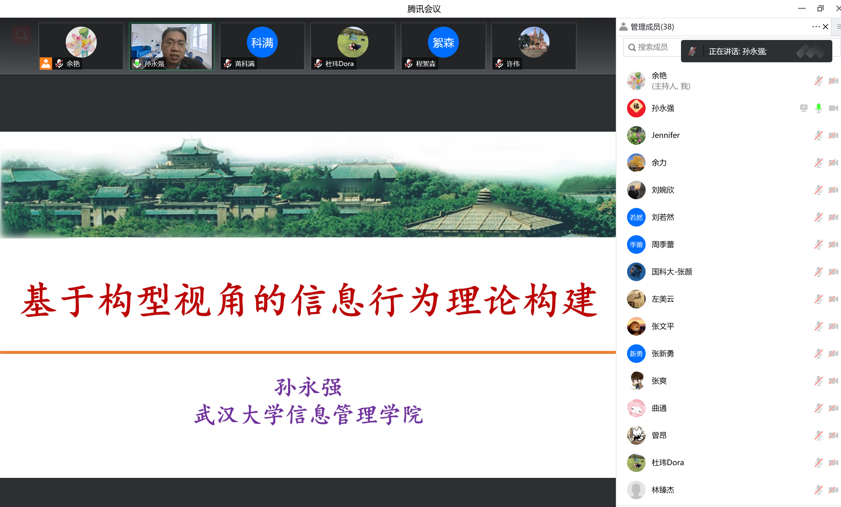 2022年10月26日星期三下午,成人动漫 经济信息管理系组织了“信息系统”双周讲坛的第十七讲——基于构型视角的信息行为理论构建。本次讲座由武汉大学信息管理成人动漫教授孙永强在线主讲,成人动漫 副教授余艳线上主持,成人动漫 左美云、许伟、程絮森、余力、付虹蛟、张新勇、孙彩虹、黄科满、张文平、杜玮、周季蕾等60位师生在线参加讲座,在线讨论气氛热烈。讲座伊始,左美云教授致欢迎词,表示加强人大成人动漫 与武汉大学信息管理成人动漫的合作与交流。随后,孙永强教授进行了精彩的演讲,深入浅出地阐释构型视角下的方法论以及研究应用,内容丰富。